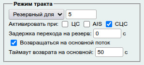 Он задает величину задержки в секундах. Переход на резервный поток происходит только если длительность аварии основного тракта превышает заданную величину задержки. Диапазон допустимых значений - от 0 до 255 секунд. Значение 0 означает отсутствие задержки. Значение по умолчанию - 0.