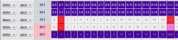 tdm_map.pngв потоках 5, 6, 8, 9 сделаны одинаковые действия: в таблице СУВ сначала выбран КИ1, затем выбран КИ16.В потоке 7 выбран КИ1, затем КИ16, затем выкл.